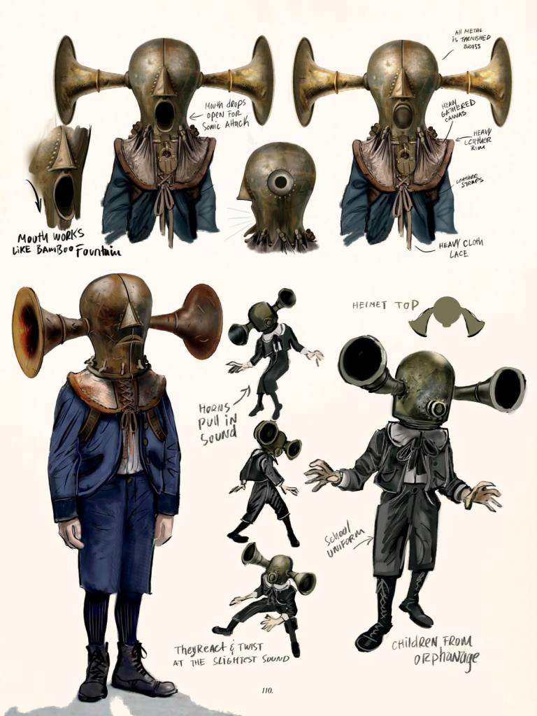 Tytus-28’s body is encased in heavy lead plating, designed to protect him from the dangerous levels of radiation he works with in his studies. His few organic remnants (a single hand and an eye) are preserved in jars attached to his chest, connected through cabling. He wears an ornate robe of Mars, though its fabric is barely visible under the layers of machinery.