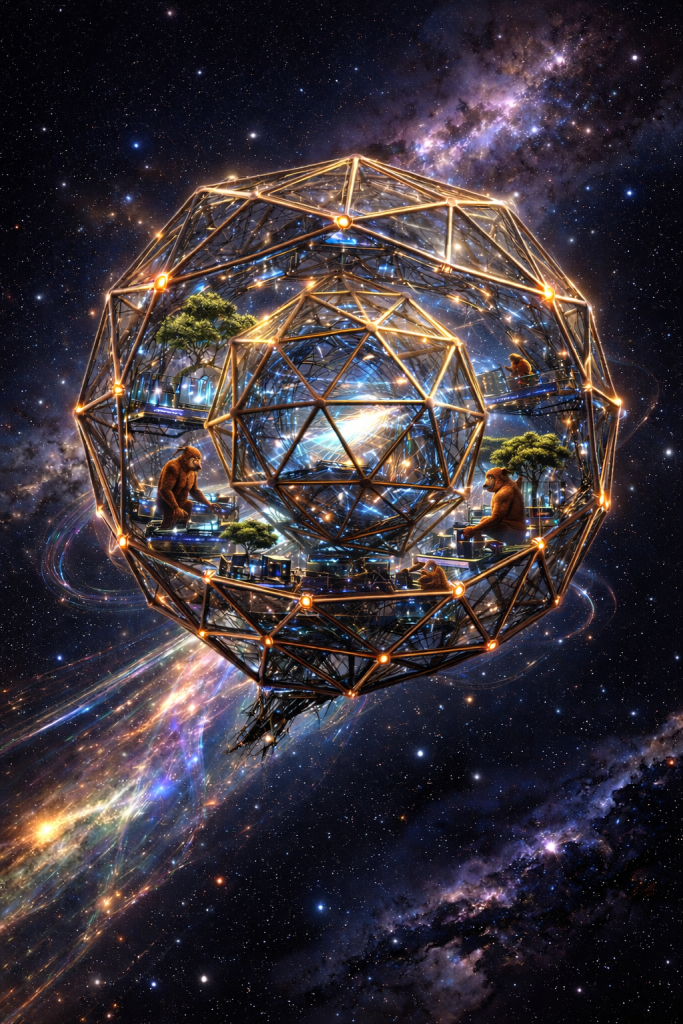At the center of this ambitious project stood Dr. Cornelius Bakunin, a brilliant post-uplift chimpanzee physicist and the first non-human recipient of the Nobel Prize. A fiery advocate for post-uplift rights and ape superiority, Bakunin championed the belief that non-human sentience deserved their own agency in the shaping of the galaxy. His movement, known as Neo-Panthropism, rejected the human-centric vision of the expanding Terran hegemony, proposing instead a primate utopia where uplifted primates could chart their own destinies.