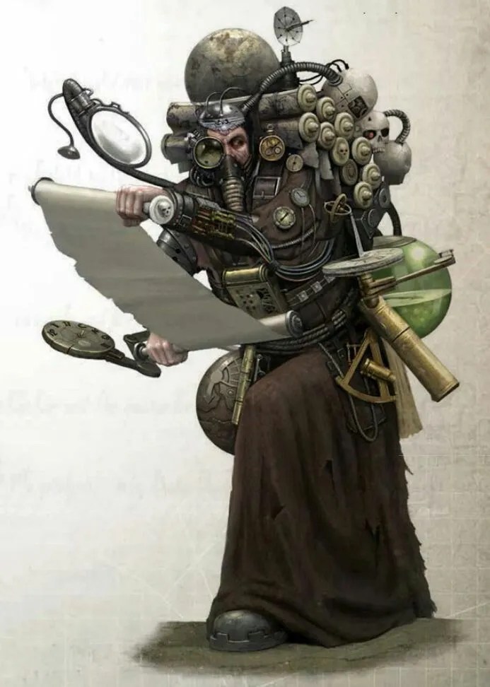 With that, she turns back to the cogitators, her hands already returning to the delicate task of calibrating the augury arrays, while her mind drifts back to the endless streams of data, always calibrating, always scanning.